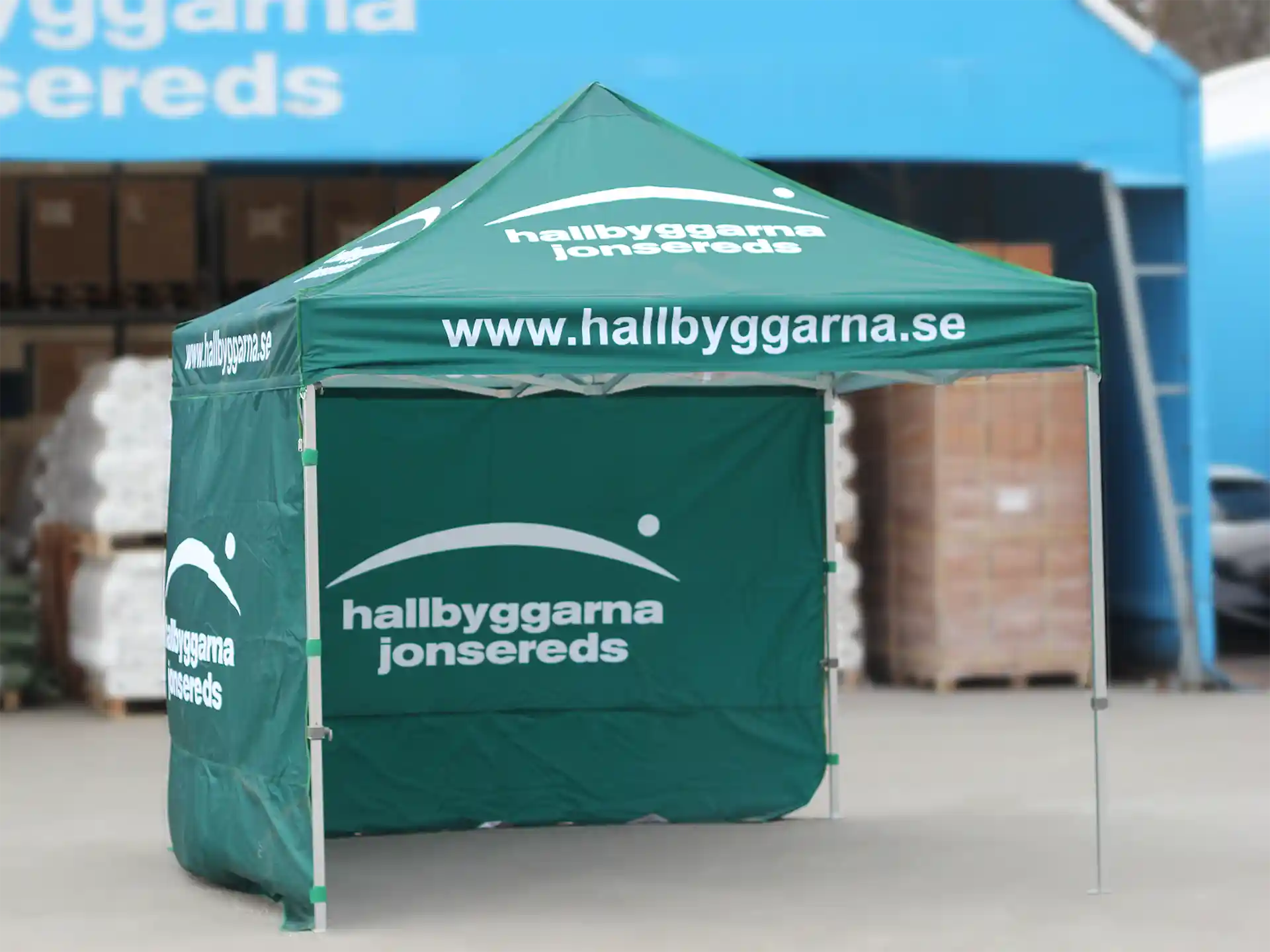 Med möjlighet att trycka både tak och väggar får du ett tält som inte bara skyddar, utan också stärker ditt varumärke.